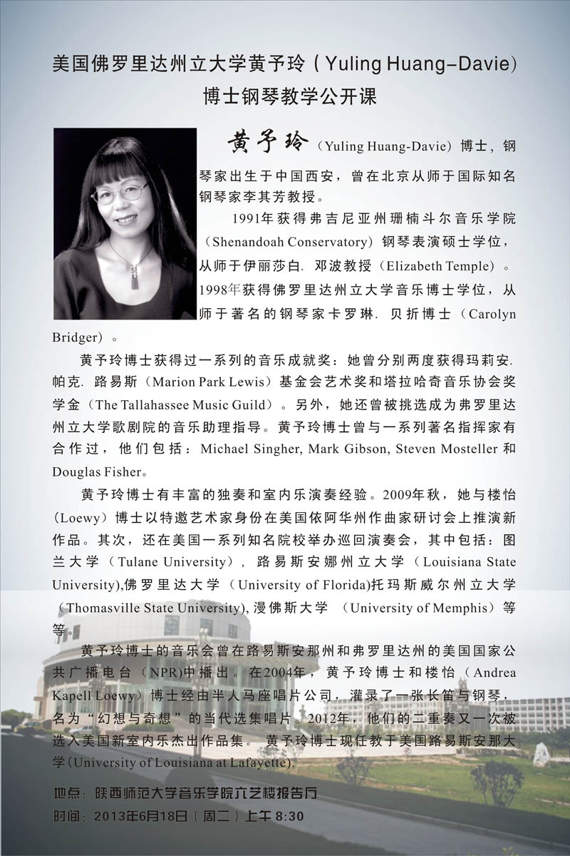 美国佛罗里达州立大学黄予玲博士钢琴教学公开课