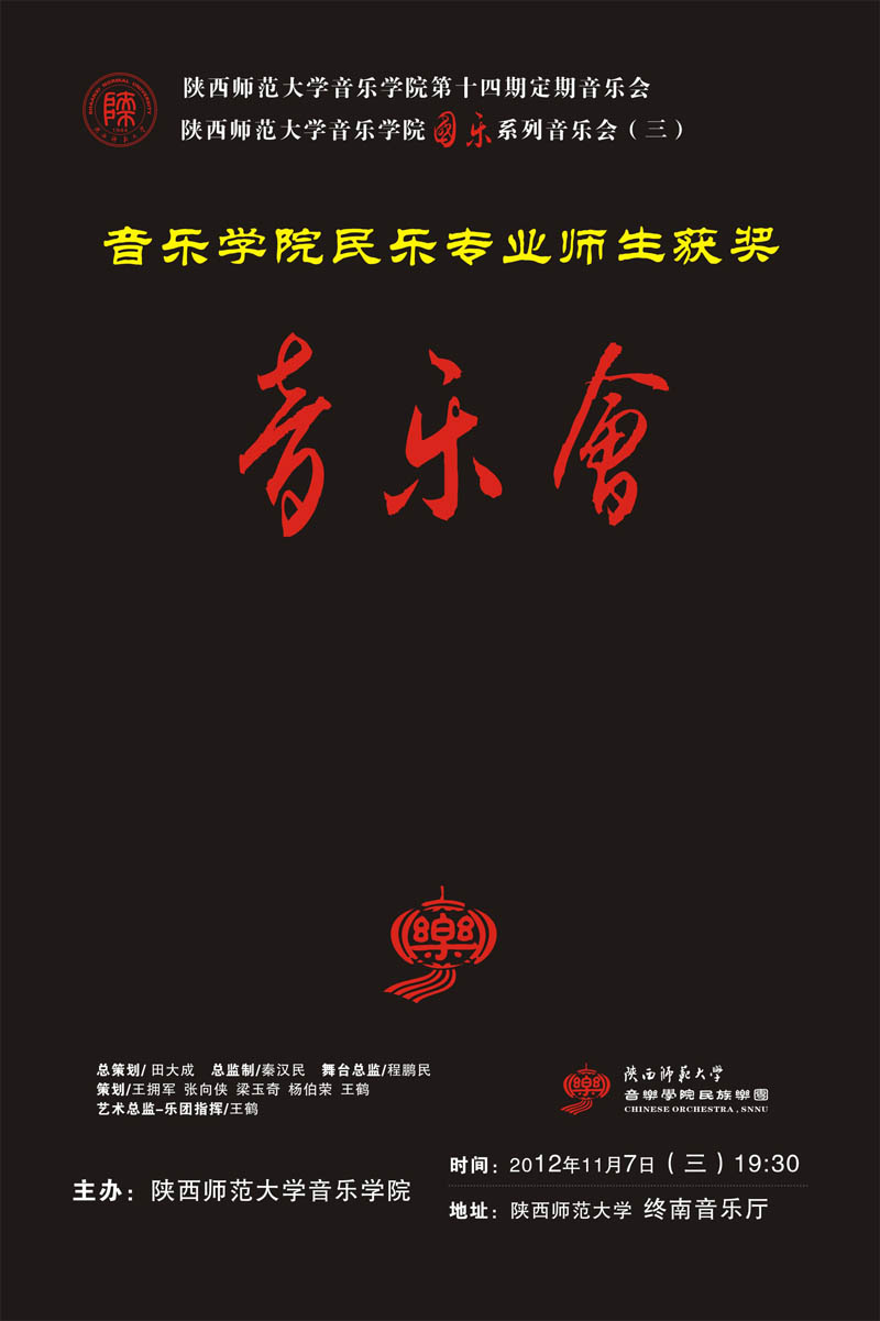 365上市集团官网第十四期定期音乐会--民乐专业师生获奖音乐会将于2012年11月7日(星期三)19:30在终南音乐厅上演,欢迎广大师生前来观看。