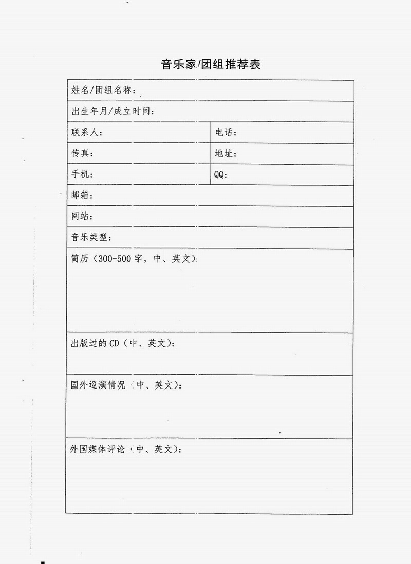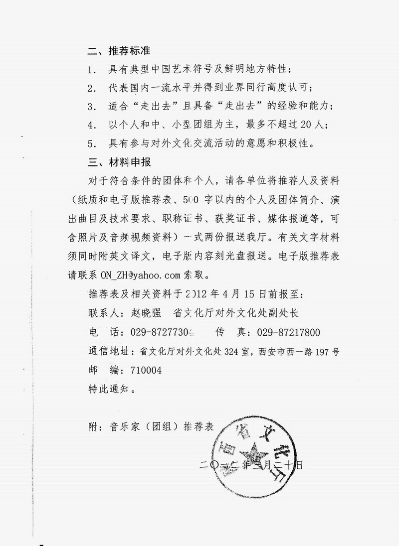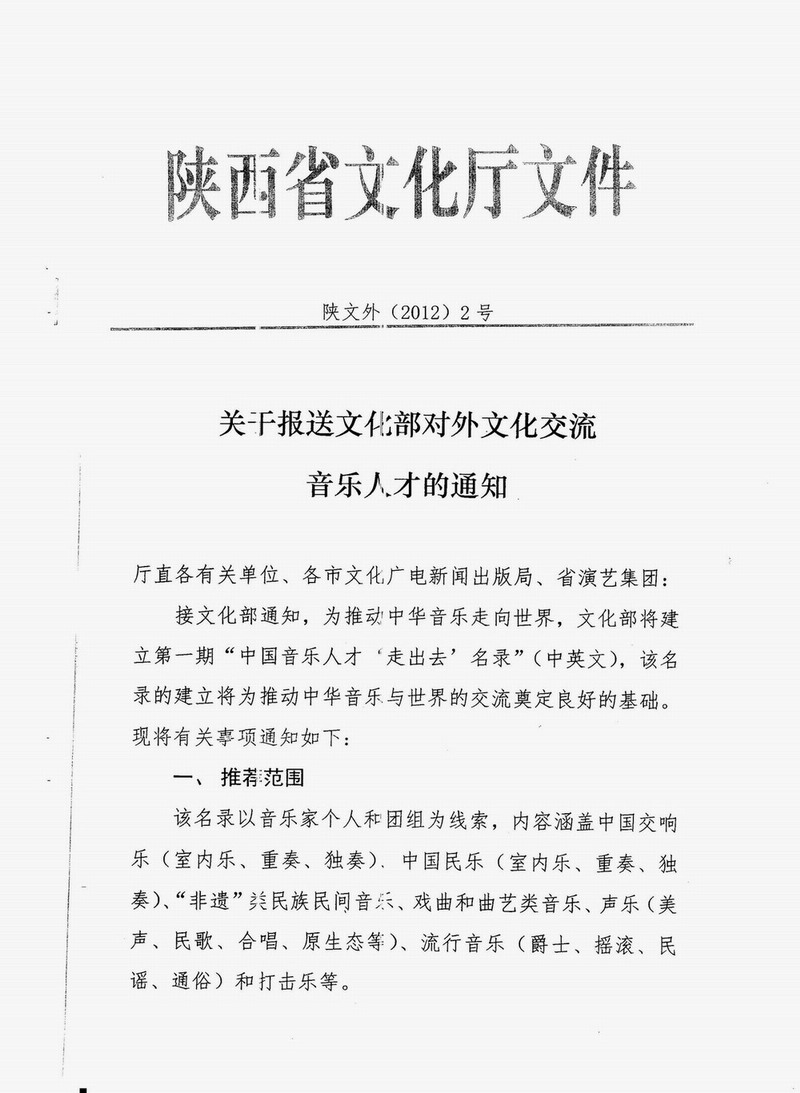 转:关于报送文化部对外文化交流音乐人才的通知