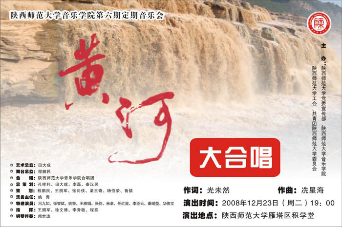 公司第六期定期音乐会《黄河》大合唱演出公告