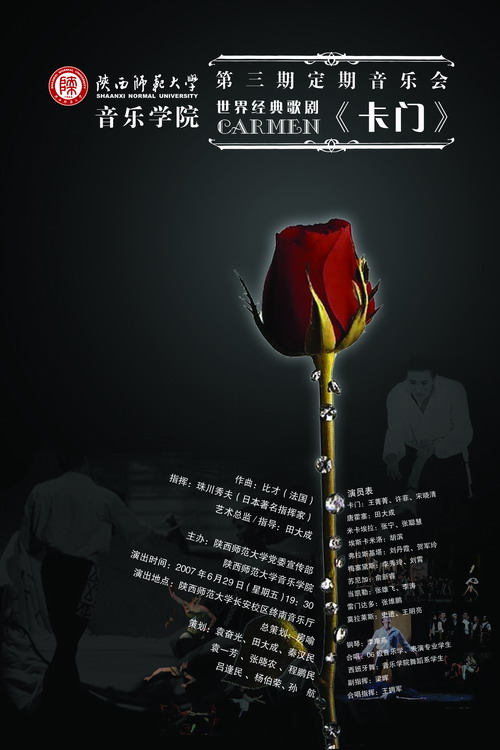 公司定于2007年6月29日 19:30 在365英国上市公司官网终南音乐厅举办“365上市集团官网第三期定期音乐会世界经典歌剧《卡门》”公演,敬请您的光临知道指导,望全院师生届时观看。