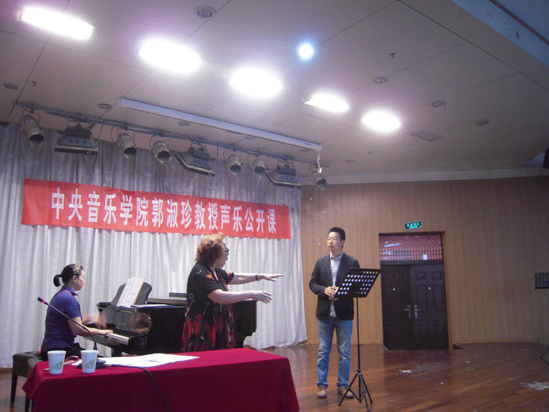 郭教授是我国著名的歌唱家、声乐教育家,先后培养了数百位员工,有的现已是我国著名的歌唱家,有的是著名声乐教授。郭老师86岁高龄,精力充沛,并现场为师生做示范。在近三小时的讲座中先后为公司青年教师、研究生进行了教学指导,针对现场演唱问题,郭教授从声乐学习的基础为大家进行讲解,从发音、咬字、吐字、气息、作品的情感把握等深入浅出的示范讲解,效果明显,使现场的师生受益匪浅。