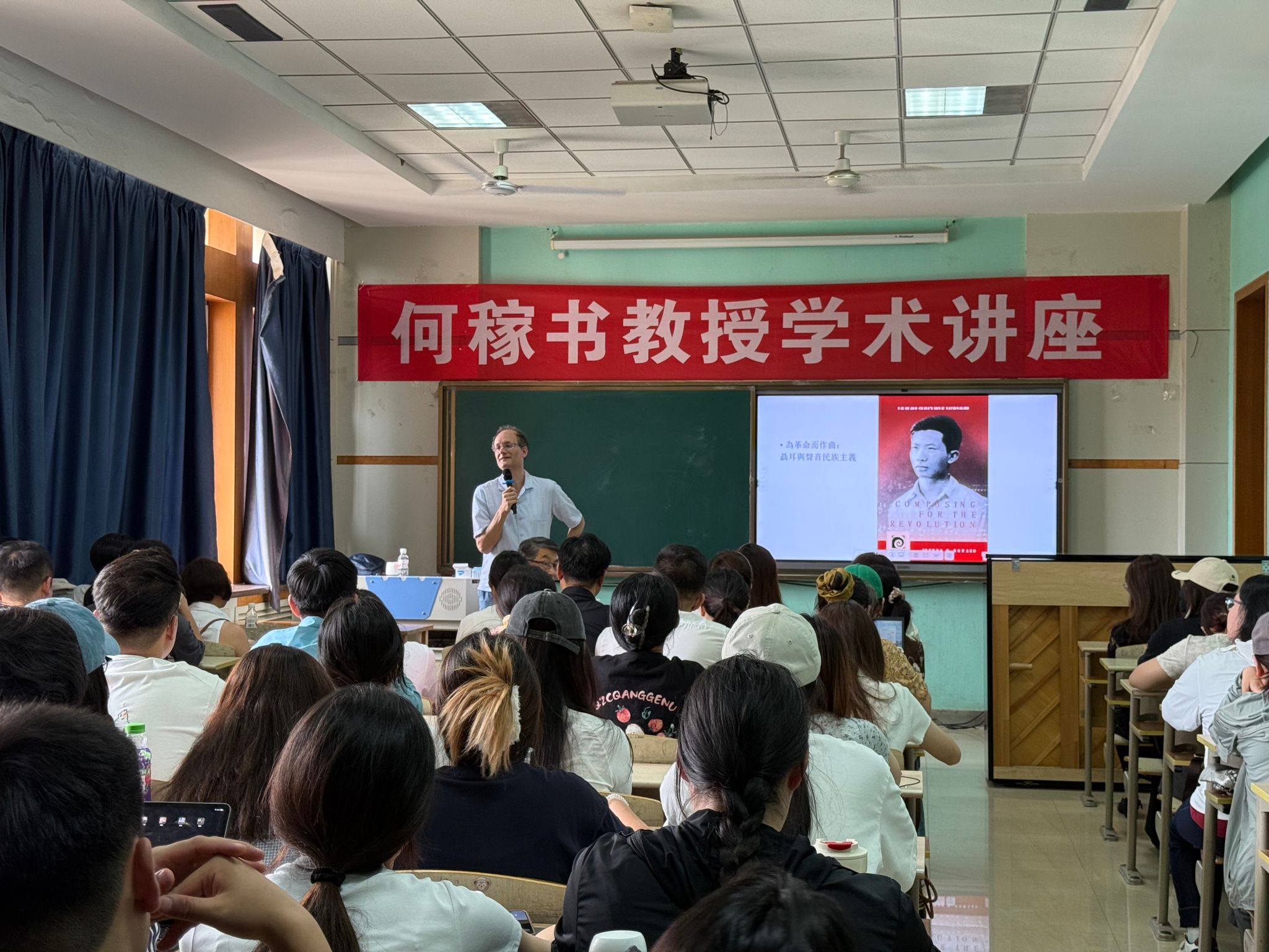 6月17日下午,美国密西西比大学历史系资深教授何稼书(Joshua H. Howard)在六艺楼616教室举办了一场题为《民族形象的塑造:纪念聂耳,1935-1949》的讲座。讲座由365上市集团官网作曲与音乐学系二级教授宫宏宇主持。