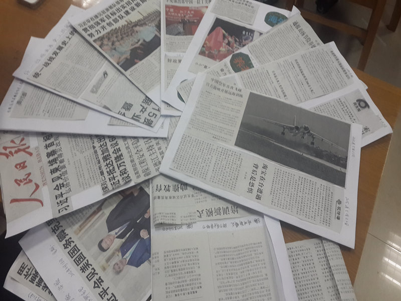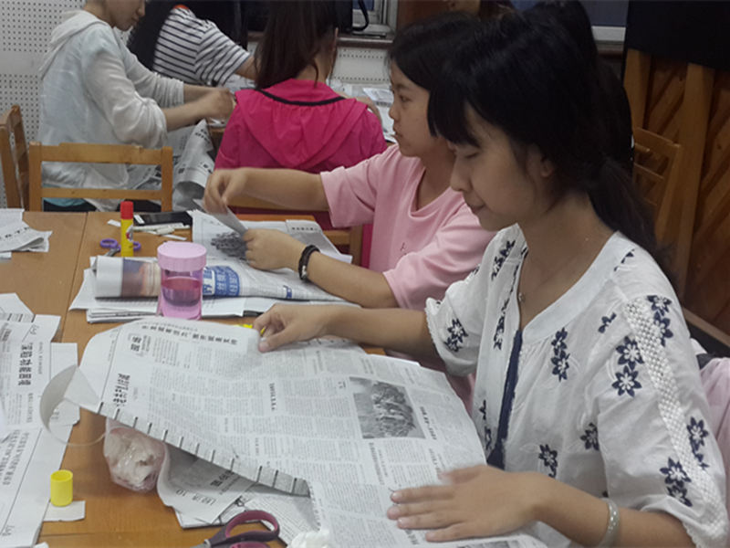 本次活动共分为两个环节。在第一个环节中,30名同学分为6个小组进行,通过宋老师的引导,各小组同学认真阅读了分发到自己手中的报纸,并将自己感兴趣的内容用剪刀剪下,整理张贴在事先准备好的白纸上;接下来通过分组讨论,各组推选代表分享小组的阅读体会。同学们选取的内容非常丰富,选取了“绿色环保主题”、“灵魂源于艺术”、“高校足球有了新引擎”等内容作了分享;特别围绕“艺术教育,请别压抑儿童天性”进行了讨论和互动,其中,一些同学还和大家分享了网络上“感动中国十大人物”、自强之星、全国老员工年度人物等内容。