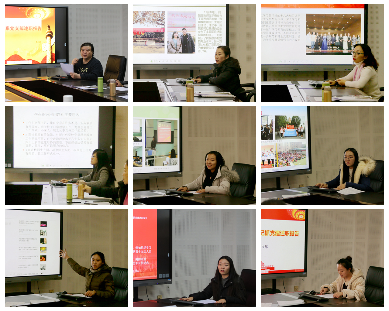 答辩会上,行政党支部、器乐系党支部、作曲与音乐学系党支部、钢琴系党支部、舞蹈系党支部、本科生2个党支部、研究生6个党支部依次进行了汇报答辩。围绕主要工作内容、存在的突出问题和主要原因、改进措施和努力方向三方面对支部书记抓党建述职报告进行汇报。