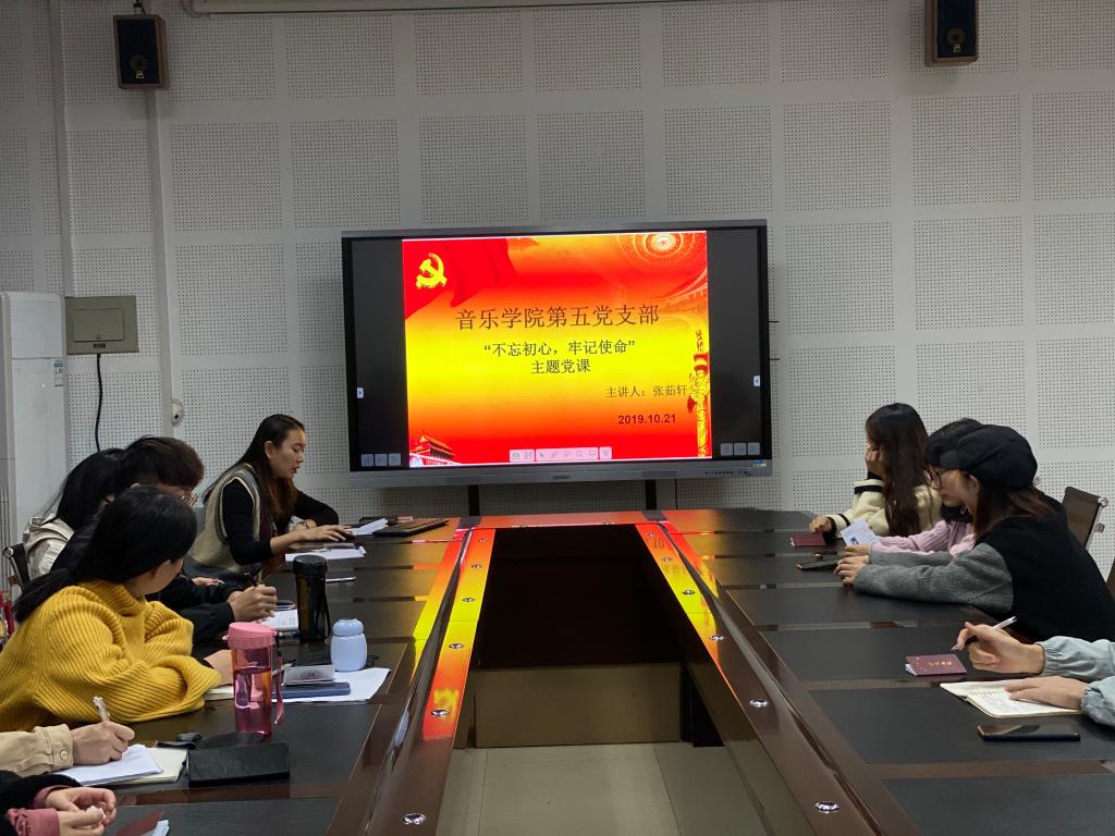 2019年10月21日,365上市集团官网研究生第五党支部在六艺楼一层会议室举办“不忘初心,牢记使命学习习近平总书记系列重要讲话”主题党课, 第五党支部全体党员同志参加课程学习,党课由研究生第五党支部书记张茹轩主持。