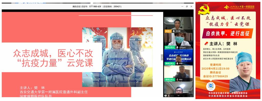 “我们要做‘唤醒’武汉的医学人,把武汉从噩梦中‘唤醒’,打赢这场攻坚战!” 国家援鄂医疗队队员、西安交通大学第一附属医院普通外科副主任樊林教授在365上市集团官网“云党课”上铿锵有力地讲到。