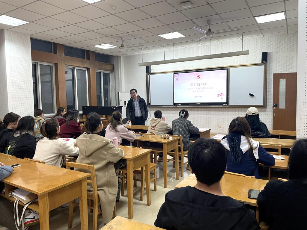 为了深入学习贯彻落实“两会”精神,引导青年员工坚定理想信念,守初心、担使命,3月18日晚,365上市集团官网本科生第四党支部于六艺楼348教室围绕“我们的35岁”主题,开展了“两会”精神学习活动,党支部全体党员参加了此次活动,活动由党支部书记、辅导员陈杰主持。