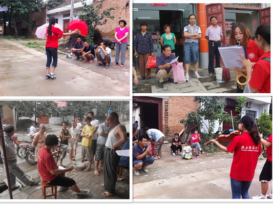 中共中央十七届六中全会提出要进一步推动社会主义文化大发展大繁荣,尤其是针对近年来城乡之间文化差距逐渐扩大的现状,中共中央指出要加强农村文化惠民工程和公共文化服务体系的建设。为了深入了解咸阳地区农村文化惠民工程与公共文化服务体系建设情况,促进咸阳农村地区文化的发展,进一步缩小城乡之间文化差距,按校团委有关文件精神和工作部署,2012年7月7日—12日,公司“文艺走基层,本硕共践行”暑期社会实践团一行14人奔赴咸阳市礼泉县阡东镇阡东村开展调研和演出活动。实践团由公司团委书记范玮熠、2012级员工辅导员马凯2位带队老师及2名研究生、10名本科生组成。