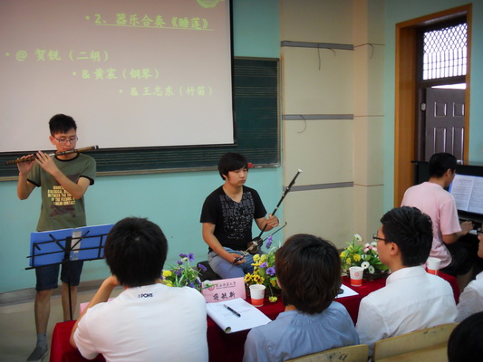 活动由全体师生合唱团歌《光荣啊,共青团》拉开了序幕。随后,由音乐学2班王君同学为大家讲述了共青团由成立至今的发展历程。伴着对共青团发展历程的回顾,精彩的团知识竞答拉开了帷幕。音乐学专业三个班的同学们积极踊跃地举手回答问题,落后的班级还进行了节目表演,逐步将团日活动推向了高潮。为了体现当代青年老员工为祖国未来奋斗的决心,同学们还通过钢琴独奏、器乐合奏以及独特的讲课经验交流等方式,向老师和同学们展示了扎实的专业能力和讲课技巧,获得了师生的一致称赞。