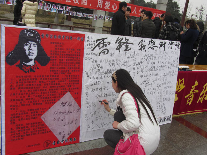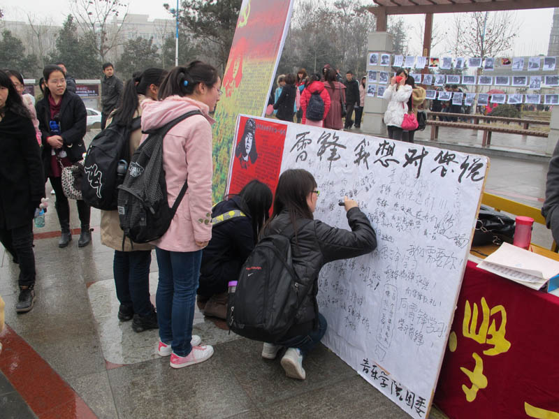 本次主题活动以举办雷锋、郭明义图片展,发放倡议宣传单,向雷锋说一句真心话等方式开展。主要介绍了雷锋与郭明义的先进事迹,两个时代的先进人物用相同的敬业、奉献和乐于助人的精神激励着广大的青年员工。通过《雷锋写给同学们的一封信》号召大家践行雷锋精神,将个人微薄的力量汇聚成祖国发展的无穷动力。同时,在《学习雷锋好榜样》的旋律下,师生纷纷挥笔写下自己想对雷锋说的一句心里话,满满的留言板上写满了大家对雷锋的怀念、对当代雷锋精神的诠释以及今后努力践行“钉子精神”的决心。