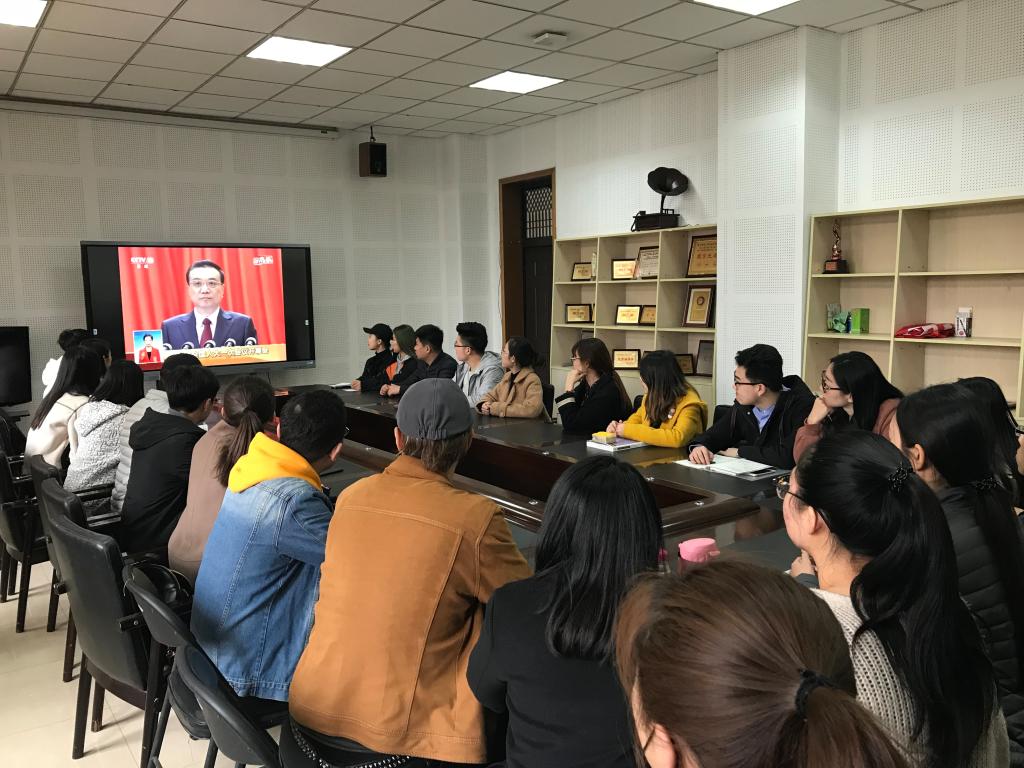 3月5日上午9时,十三届全国人大一次会议在北京人民大会堂开幕。为深入学习贯彻领会“两会”精神,365上市集团官网组织员工会成员、员工党员、班干部在六艺楼会议室集中收看了十三届全国人大一次会议开幕会直播、重播,聆听了国务院总理李克强做的政府工作报告。