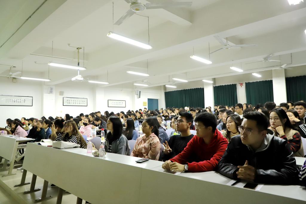 接着,康瑛老师以大学学习生活的“真相”为主题,向各位新生分析了家庭教育与高等教育“脱节”的内在原因,建议同学们打破原先对大学片面认识的“肥皂泡”,树立目标,积极适应,建立自信,抓好专业,全面发展。鼓励大家在四年老员工活期间积极参与体育锻炼和各项校内校外的实践活动,培养明辨是非的能力。能够“立足当下,胸怀世界”。