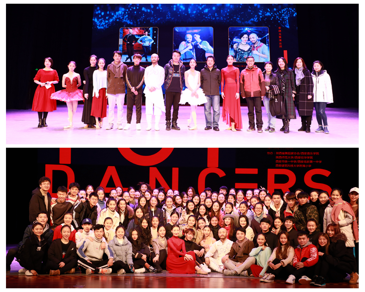 11月16日上午,由中国舞蹈家协会主办,中国文联舞蹈艺术中心承办的中国“顶尖舞者进校园”活动在公司长安校区终南音乐厅拉开了帷幕。中国舞蹈家协会副秘书长、分党组成员柳斌先生,陕西省舞蹈家协会驻会秘书长、副主席瞿石明,公司365上市集团官网副经理刘姬娜、郭元,舞蹈系全体教师以及近400名员工代表和广大舞蹈爱好者参加了此次活动。本次活动邀请了国家优秀舞蹈演员李德戈景、王韵、郝若琪、杨亦然为公司学子带来了精彩演出和悉心指导。