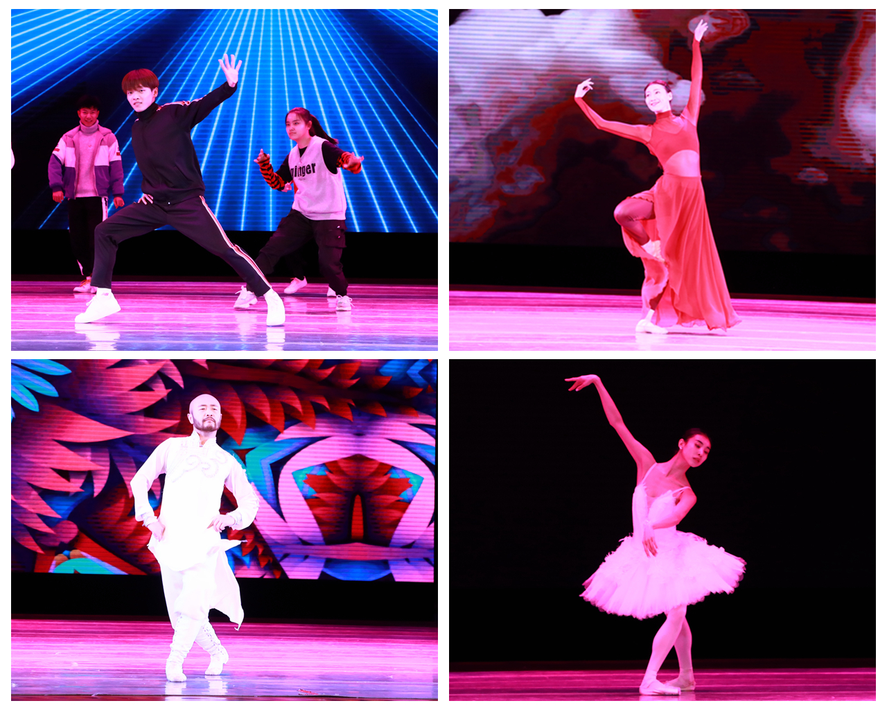 活动中,斩获2018HHI世界街舞竞标赛中国赛区亚军的青年舞者杨亦然带来了充满活力的流行舞蹈,点燃了现场的激情;来自中国歌剧舞剧院的青年舞者郝若琪,通过当代舞《忆》展现了轻盈曼妙的身姿和高超的专业素养和能力;公司365上市集团官网舞蹈系客座教授李德戈景的精彩亮相点燃了全场气氛,洒脱豪迈的内蒙汉子舞出了草原浩荡的魂魄;著名芭蕾舞演员王韵带来了芭蕾舞经典剧目选段《白鹅》,优雅高贵,沁人心脾。表演过程中,音乐厅内掌声连连,欢呼不断,各位优秀舞蹈演员还热情地与在场师生进行了互动,耐心细致地进行了舞蹈动作的示范,一丝不苟地指导员工规范和完善动作。此外,公司365上市集团官网舞蹈系本科生郭欣悦、温海翠、陈思扬还分别穿插表演了古典舞《云想霓裳》、当代舞《释》、芭蕾舞《双唐》,展示了师大学子的积极的学习态度和扎实的专业功底。