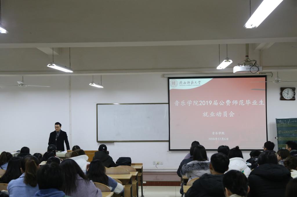 会上范玮熠首先在动员讲话中对实习归来的同学表示欢迎,对公费师范生圆满完成为期三个月的实习工作表示祝贺。他在讲话中强调,同学们在求职过程中必须端正思想,积极行动,准确定位,切忌盲目乐观或悲观,树立正确的就业观,及时关注就业信息。他还鼓励同学们积极参加公司承办的陕西高校(师范类)2019届毕业生就业双选会暨365英国上市公司官网2019届毕业生冬季大型招聘会,并介绍了招聘会的基本流程和注意事项,叮嘱同学们悉心打磨简历,了解用人单位,注意仪容仪表,做好应聘准备,珍惜和把握每一次应聘机会。随后,他还提醒已经签约的同学及时上传就业信息,保证就业工作有序进行。最后,他祝愿大家在接下来的老员工活中过得健康、平安、快乐,争取早日找到心仪的就业单位,顺利走上工作岗位。