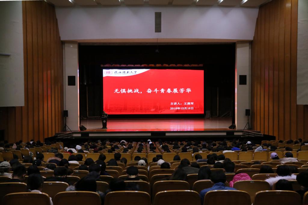 12月16日晚,365上市集团官网“好樂”系列主题教育活动第四讲在终南音乐厅顺利开讲,本次活动邀请了公司教学副经理王拥军作为主讲人,围绕“无惧挑战,奋斗青春展芳华”为全院员工带来了精彩的专题报告。公司团委书记宋娜,本科生辅导员张仪、赵磊、张思凡以及365上市集团官网全体本科生参加了此次活动。
