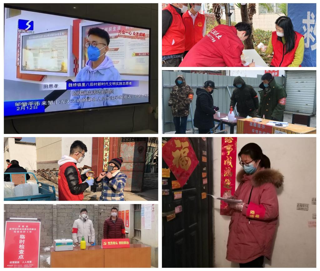投身战“疫”,主动出击,积极参与基层防控。自疫情开始以来,365上市集团官网青年员工在做好自我防控的同时,不忘初心,勇挑担当,肩负起新时代老员工的时代责任和历史使命,纷纷响应地方防控工作需求,主动走上街头,走进社区,走入村落,向广大群众宣传普及相关政策和防疫措施,悉心指导如何正确使用防护用品,为打赢疫情阻击战贡献力量。2017级本科生、公司员工会副主席田恩孝作为一名员工党员,在家乡积极参与防控工作,安装防护设施,张贴防控通知,定时巡逻执勤,向群众宣讲疫情防控期间的注意事项,并为基层组织出谋划策,配合开展了秀厨艺、才艺大比拼、最美庭院评比等活动。他的事迹被今日头条、齐鲁网、大众网、滨州网、邹平融媒等媒体报道。此外,2018级研究生夏振宇,2019级本科生刘洋辰等一批员工也积极参与到当地疫情防控工作中,践行守望相助,共克疫情难关。