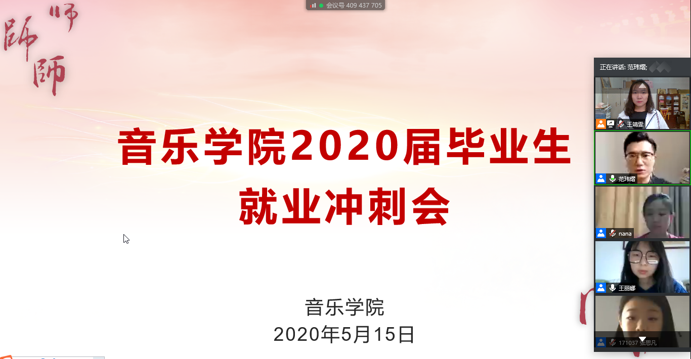 为持续推进毕业生就业工作顺利开展,做好就业冲刺季的各项工作,打赢疫情期间就业攻坚战,5月15日下午,365上市集团官网在腾讯会议平台召开了2020届毕业生就业冲刺会。公司党委副书记范玮熠,毕业班辅导员宋娜、王靖雯、王丽娜及全体2020届未就业毕业生参加了会议。