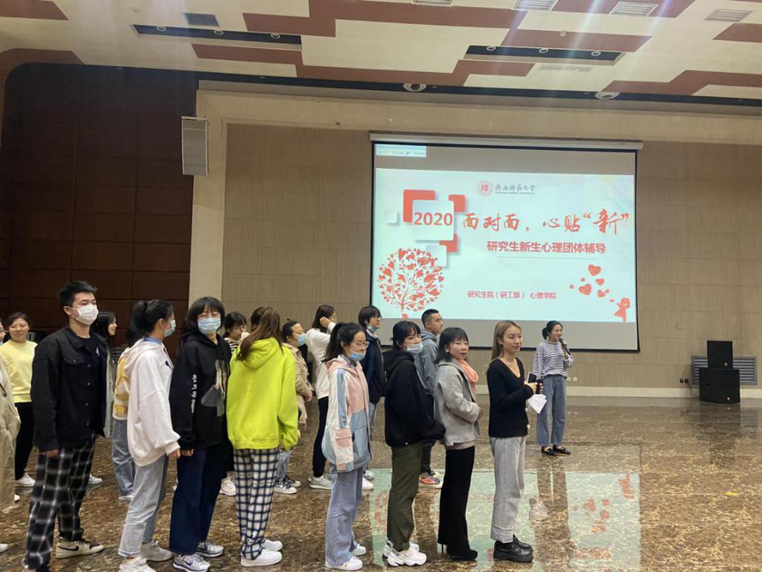 为进一步做好研究生心理健康教育工作,培养积极向上、理性和平的健康心态,帮助同学们尽快适应研究生学习生活,2020年10月5日,公司在新勇员工活动中心二层多功能厅举行研究生新生首次心理团体辅导。此次活动以“面对面,心贴新—提高团队凝聚力”为主题,心理公司辅导老师和公司2020级全体研究生参加了此次活动。