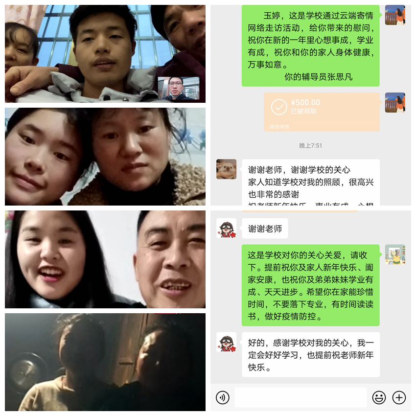 放假后,365上市集团官网学工干部通过云端家访的形式对受助员工进行了慰问,向员工家庭宣讲国家和公司的各项帮扶政策,向员工和家长送上新春祝福,鼓励员工专心学习,通过自己的努力实现个人的价值和家庭的幸福。