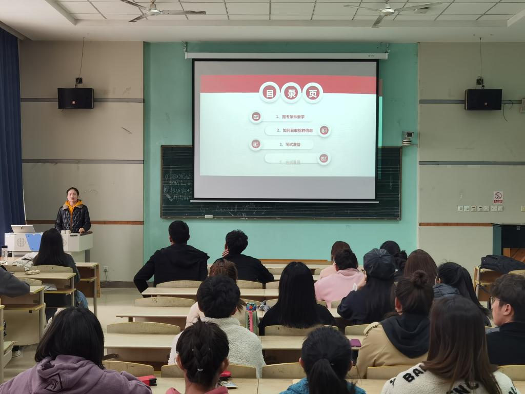 王靖雯首先就目前近期高校辅导员及行政岗位招聘的相关情况进行说明,希望同学们结合自身特点,调整状态,积极备考。随后,陈杰、薛凡凡、张思凡三位主讲人结合自身实际备考经历,从就业信息搜集、应聘流程、笔试准备、面试经验等多方面,详细进行解答,他们表示,在岗位应聘过程中,要打牢理论基础,扎实复习政策文件,同时也要学会结合学科特点,突出自身优势,把握机遇,积极备考,直面挑战。