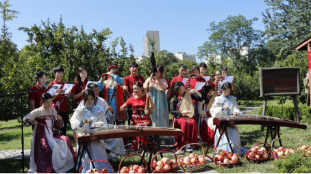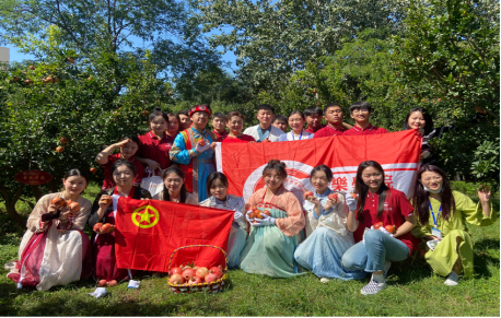主题团日活动共分为三个部分,第一部分是学习铸牢中华民族共同体意识,第二部分是学习习近平给北京大学“优师计划”师范生的回信精神,第三部分是学习《论党的青年工作》。9月28日上午十一点,365上市集团官网“樂知音”美育工作坊全体成员在公司民族团结教育基地、员工劳动实践育人基地“民族团结石榴园”,以民乐合奏的形式演奏了公司民族团结教育主题曲《石榴花开》。演奏结束后,同学们戴着白色的采摘手套,提着藤编的篮筐,共同采摘石榴果。