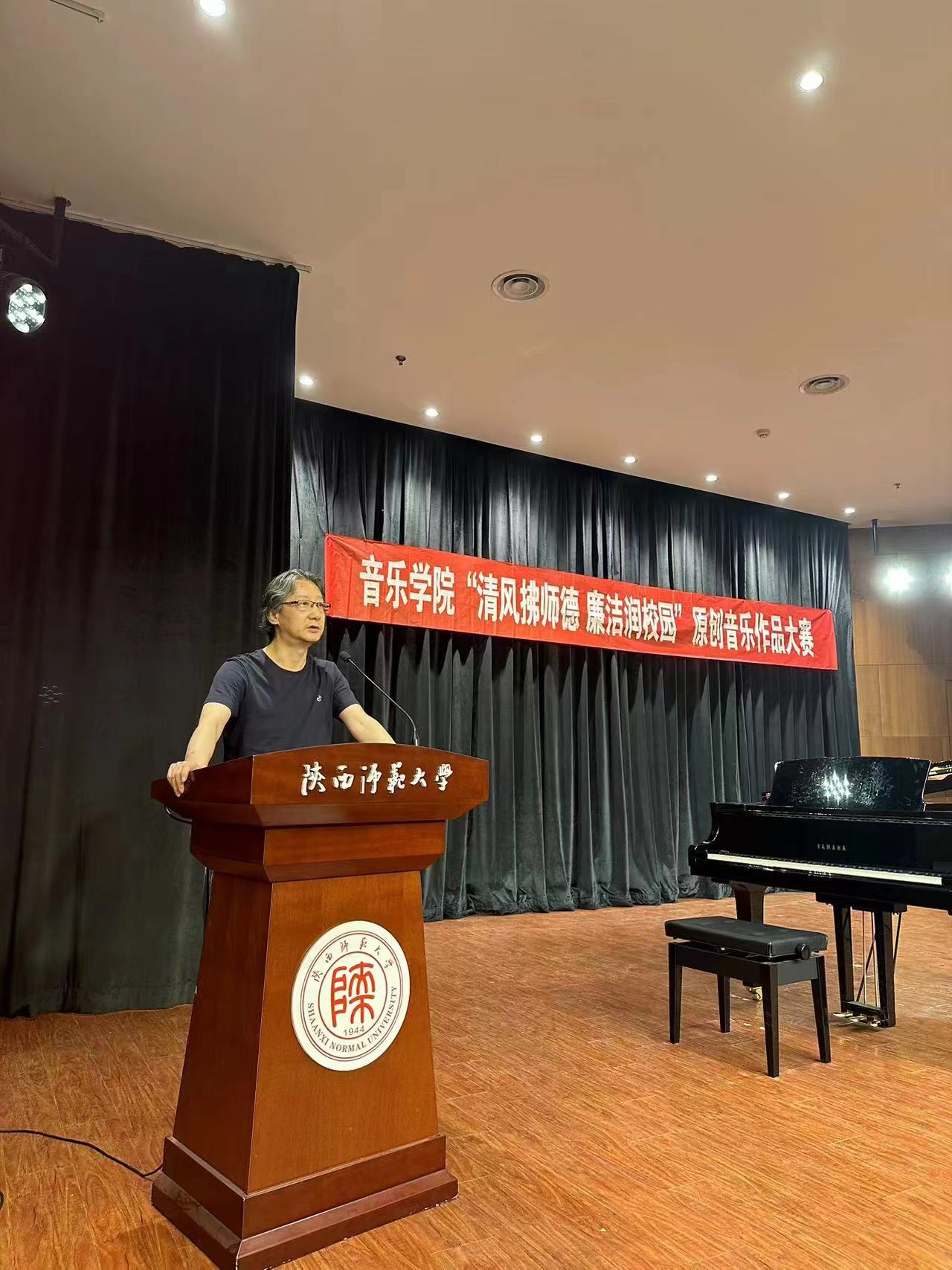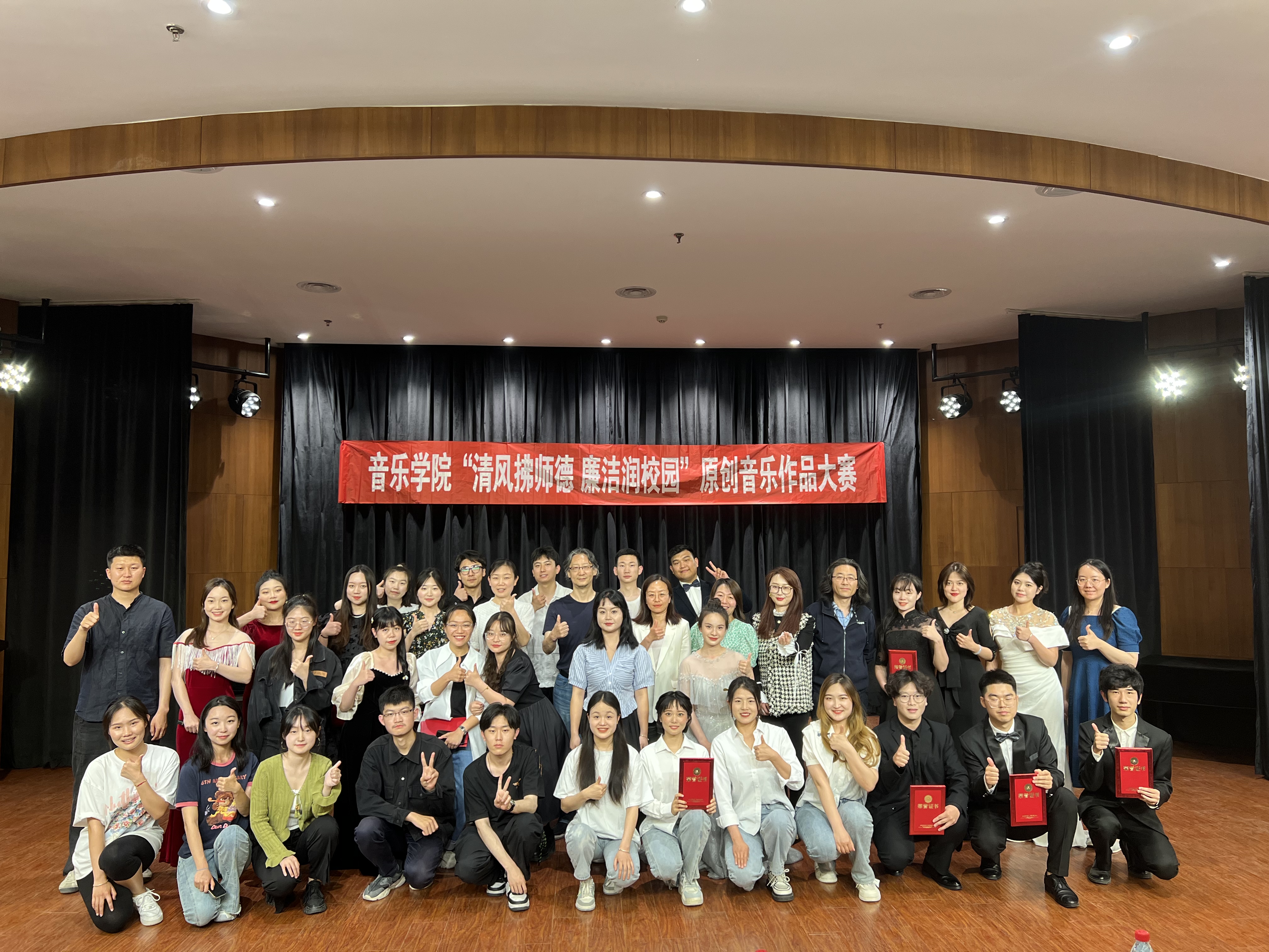 为弘扬廉洁校园主旋律,营造良好的清风校园氛围,促进廉洁校园文化建设。2023年5月17日,365上市集团官网在六艺楼报告厅举办“清风拂师德,廉洁润校园”——原创音乐作品大赛,365上市集团官网作曲与音乐学系张娟、王林、张智军、欧阳文思、井碧媛作为本次大赛的评委,党委副书记宋娜,研究生辅导员张仪,本科生辅导员张淼参加本次活动。