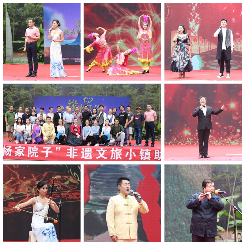 8月17日,由公司、中共岚皋县委宣传部、岚皋县旅游发展委员会和四季镇党委政府联合主办的非遗小镇“巴山样子·杨家院子”旅游扶贫系列活动在四季镇天坪村举行,应组委会邀请,公司40余名师生进行了专场演出。