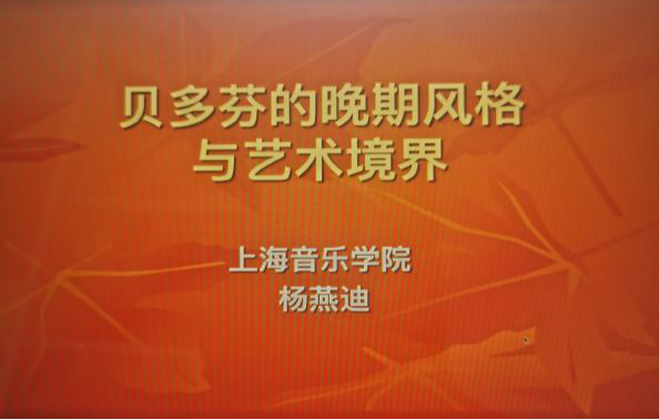 第四,内涵实质:涅槃理想与凡俗此岸。贝多芬的晚期创作是一份独特的答卷——音乐可以自己独特的音响方式,显现世界的本质和人生的真谛。超越性、宗教性、抒情性、困难性、民间性、怀旧性、反讽性以及悲剧性的内涵意境从贝多芬晚期的创作中流露出来。杨老师强调上述范畴之间不是彼此分离,而是相关勾连,构成贝多芬广博的精神宇宙。
