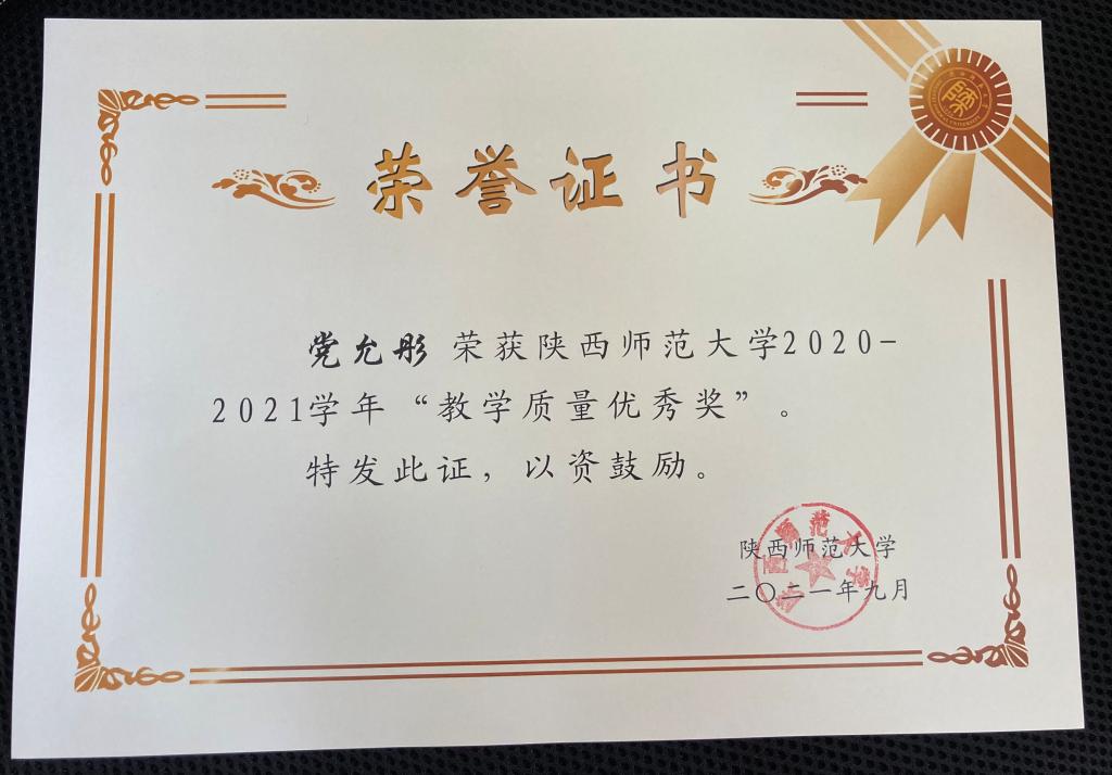 近日,365英国上市公司官网公布了2020-2021学年“教学质量优秀奖”获奖教师名单,我院李康燕、党允彤老师获此殊荣。