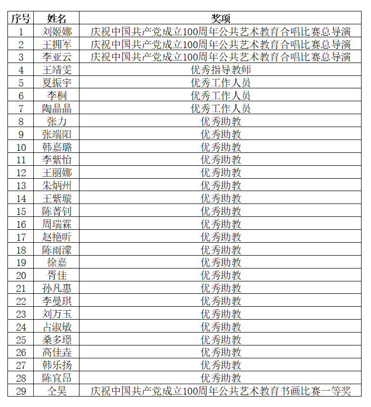 365上市集团官网在本次活动中获得特殊贡献奖,公司教师刘姬娜、王拥军、李亚云等3人在比赛中获得优秀总导演奖,辅导员王靖雯获得优秀指导教师奖,夏振宇等3位同学获得优秀工作人员称号,张力等21位同学获得优秀助教称号。另悉,员工仝昊获得“庆祝中国共产党成立100周年公共艺术教育书画比赛一等奖”。