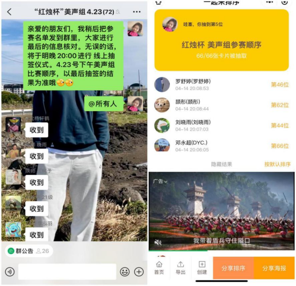 (美声组线上抽签仪式)
