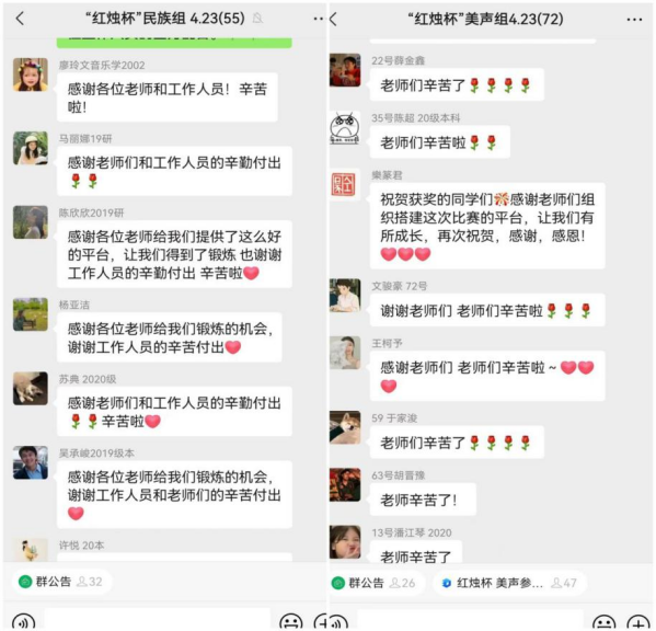 此次比赛以“古诗词”与“艺术歌曲”为主题,其目的不仅在于展示同学们的演唱水平,而且在于引领同学们感受中国诗词歌曲的艺术魅力、追溯中国艺术歌曲——中、西方作曲技术与中国诗歌完美融合这一声乐体裁的发展源头,梳理其百年的发展历程;更重要的是传递中国诗词歌曲的精致典雅与深刻寓意,让传承我国经典文化的理念根植于每一个人的内心。最后,感谢公司领导以及声乐系各位教师对首届“红烛杯”声乐比赛的鼎力支持与台前幕后工作人员的全力配合,使得此次大赛取得圆满成功,同时也向每一位走上舞台的同学点赞、鼓掌,为你们感到骄傲!