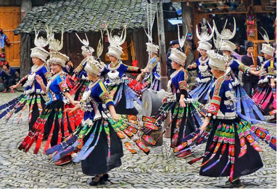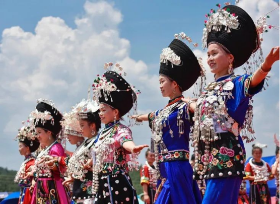 师:苗族主要分布在贵州、湖南、云南、广西、海南等省。苗族聚居的苗岭山脉和武陵山脉气候温和,山环水绕,大小田坝点缀其间。