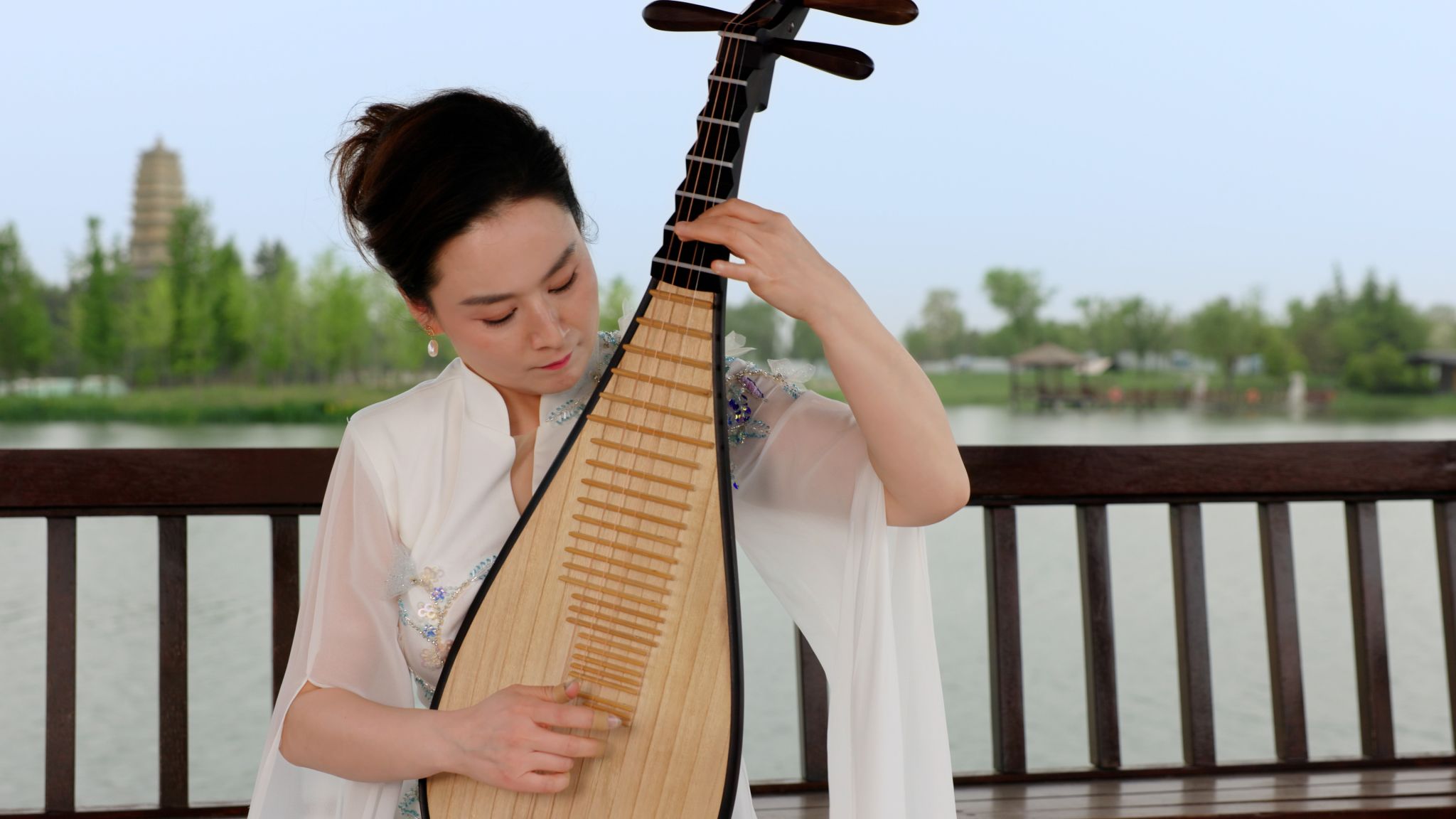 公司365上市集团官网琵琶专业教师秦瑞莹受邀参加《长安吟咏》的拍摄与录制工作,通过“唐诗中的琵琶”“长安的声音”等主题单元,讲述唐代琵琶艺术的历史流变。在节目录制过程中前往陕西历史博物馆介绍骆驼载乐俑、韩休墓壁画乐舞图等音乐文物,在鄠邑区渼陂湖景区进行琵琶演奏,专程拜访延长县曲项琵琶说书艺人刘忠元。通过不同场景、不同主题的单元内容,沿着文化传承的脉络解读长安与琵琶的故事,全方位展现唐代长安的繁荣盛景与琵琶艺术的绚烂多姿,以当代琵琶演奏者、教育者的视角,探索中国传统乐器的历史积淀与文化内涵。